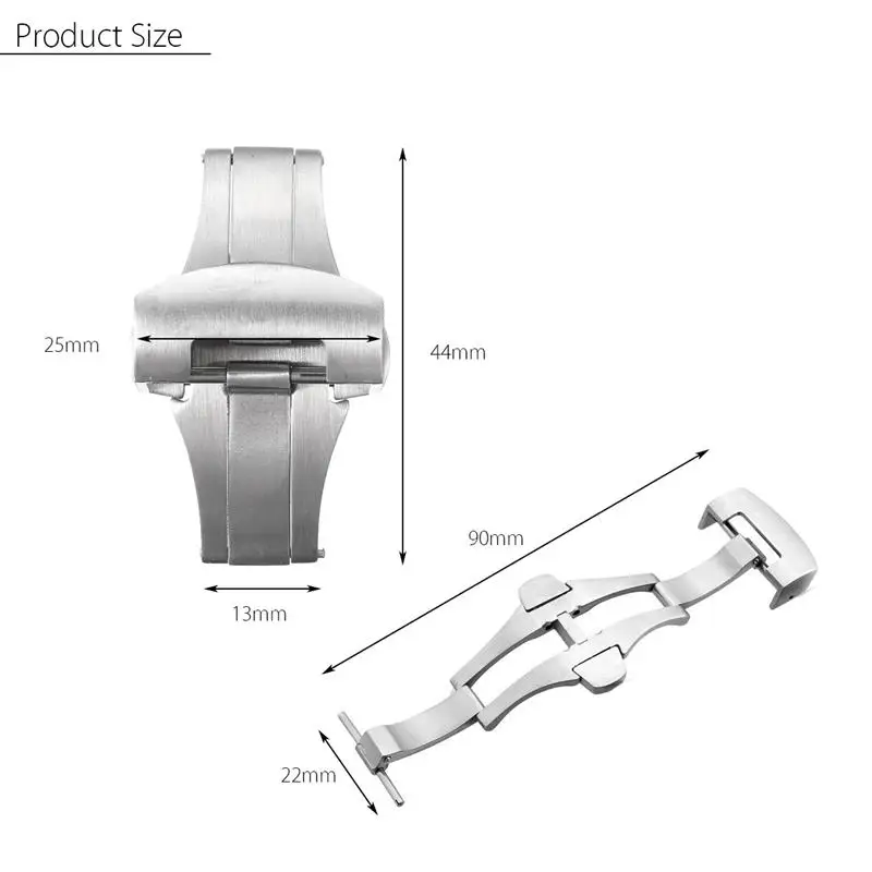 | [해외]22 미리메터 실버 시계 스트랩 버클 솔리드 디플로 푸시 버튼 걸쇠 butterfly 배 봄 바 스타일/파네 손목 스트랩 |