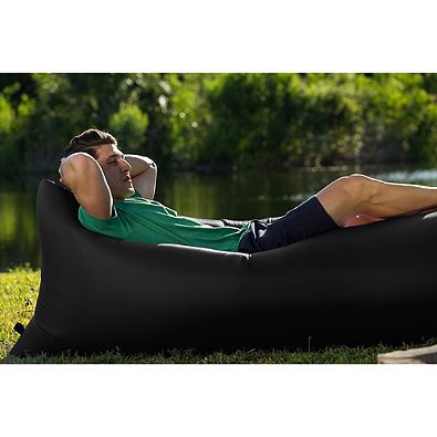 Studio : The Pouch Couch Publisher : The Pouch Couch Product Description The Pouch CouchTM in Black Easy to Inflate The Pouch Couch slips neatly in the small, lightweight carrying pouch. When you need the full size lounge chair, pop it out and inflate it. Easy to inflate, simply hold it away from your body and wave it through the air, roll the end and clip to secure. - When you need a full size lounge chair, pop the Pouch Couch out of the small, lightweight carrying pouch and inflate
