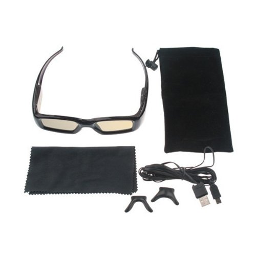 Package Content: 1X Excelvan 3D Universal Active; TV Glasses;1X USB Cables (2m including the connector);1X Black Storage Bag;1X Cloth;3X Nose Piece (S & M & L) ;1X User's Manual