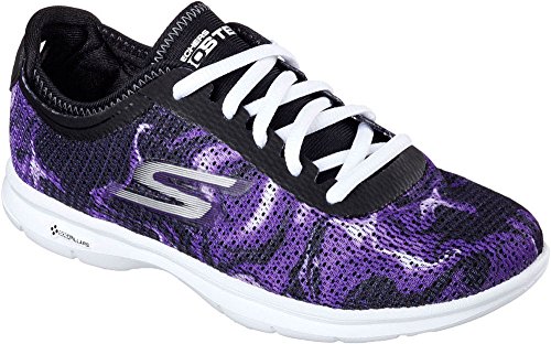Binding : Apparel Product Description Inspired by our Skechers GOwalk 3 platform, the Skechers GO STEP - Daze combines innovation and style in a modern athletic look. Features Goga Mat Technology and GO Pillars in outsole. Features high-rebound cushioning with responsive feedback. Combines a proprietary 'SQUISH' component with our exclusive Resalyte® material. Goga Mat® technology. GO Pillars technology on midsole and outsole provides anatomically correct arch support and shock absorption Lightweight colorful swirl print mesh fabric upper for cooling comfort. Memory Form Fit design with memory foam padding around heel for a custom-feel fit. Resalyte® Midsole - proprietary lightweight injection-molded compound with memory retention helps absorb impact Independent GOimpulse and integrated GO Pillar sensors offer flexibility and feedback for a more responsive walking experience than ever before. Multi directional traction sole. 0