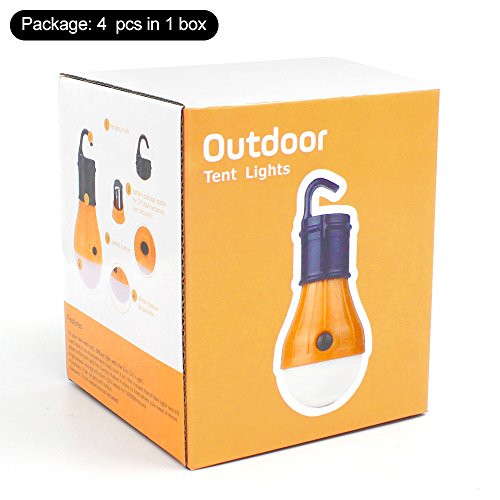 Features: What is the most important point for camping lantern? That should be lightweight and water resistant. This handy led tent light is only 75 gram after you input three batteries. Please note that the 3 x aaa batteries are not included for sale. It comes with an adjustable light that can brighten wide area or provide a dim and warm cozy glow. Great choice for your camping equipment and gear. This camping lantern is built with high-quality water resistant abs materials, which is well enough to support your outdoor and indoor activities such as camping, hiking, hunting, mountaineering, fishing and so on. Due to its specific design, the tent light can be hang on tree, rope or the tent. You can also use it as a backup emergency light in your car. Specification: Material: Abs package included: 4 packs product application: Night light, emergency lighting, outdoor playing, camping, hiking, hunting, mountaineering, fishing, reading are not appropriate. Routine maintenance: 1,light up to 10 hours with full battery capacity in high light (aaa batteries not included),please take enough batteries when longer hiking trip. 2,please replace the battery in time when the light dimmed to ensure the longer lasting use.Feature
