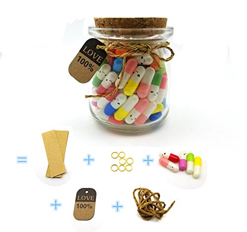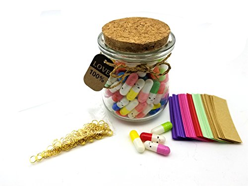 Dr.Luck 120 Pcs Capsule Message in a Glass Bottle Set, Love Letter Half Color Pill For Mother's Day, Valentine's Day