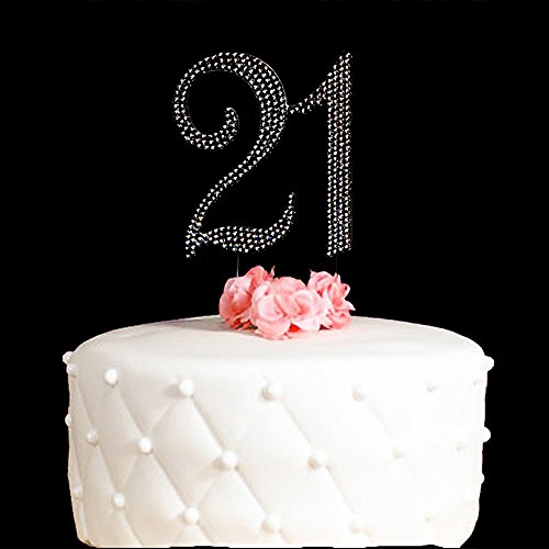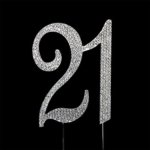 21 Cake Topper for 21 Years Birthday Or 21ST Wedding Anniversary Silver Crystal Rhinestone Party Decoration (Silver)