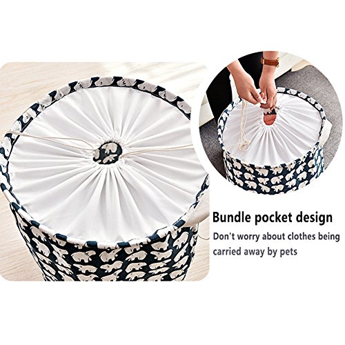 Large Round Laundry Hamper Washable and Durable Laundry Basket with Handle Collapsible Clothes Storage Bag for Kids Women Men Dirty Clothes Hamper also Use for Toy Storage