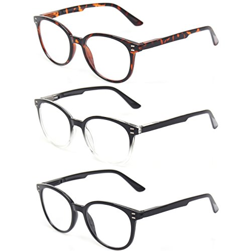-. Brand : Kerecsen -. Department : unisex-adult -. Feature : Set of reading glasses gives you great value for a quality product / Convenient set allows you to keep a pair of glasses for reading in different places so you always have a pair handy / Classic Shape is suitable for any age and for any shape face / Durable spring hinge reading glasses / Fashion Glasses for reading for men and women of all ages -. ProductGroup : Apparel -. ProductTypeName : EYEWEAR -. Size : Medium -. Title : Reading Glasses 3 Pack Round Frame Spring Hinge Readers Men and Women Plastic Glasses