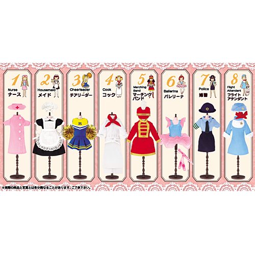 메이커:RE-MENT 상품명:쇼쿠간(완구가 딸린 식품) 푸치 모드 콜렉션 나리키리 제복 콜렉션 전8종세트 세트내용:간호사/메이드/치어리더/코크/마칭(Marching) 밴드/발레리나/여경/플라이트 attendent