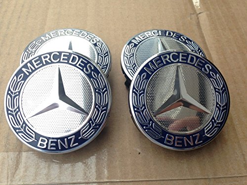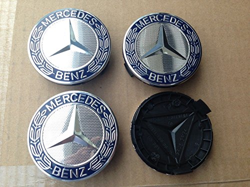 MERCEDES SET OF 4 Dark BLUE CENTER WHEEL HUB CAPS 75 MM COVER CHROME EMBLEM