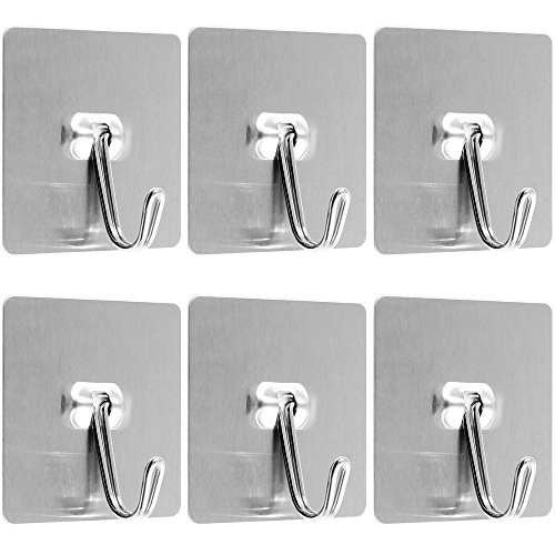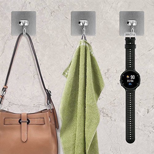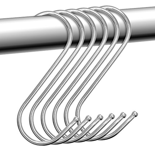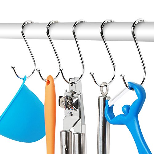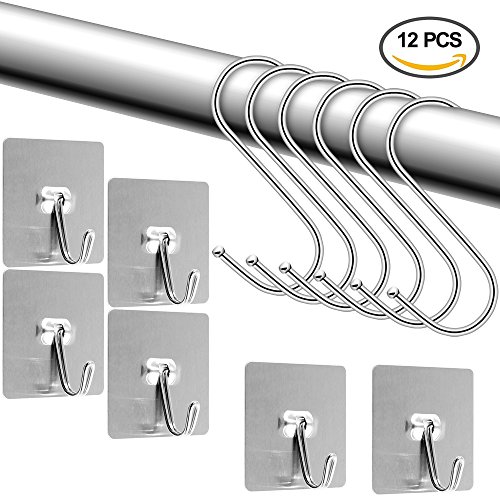 12 pcs S Shaped Polished Stainless Steel Metal Hanging Hooks and Stainless Steel Strong Adhesive Hooks, SourceTon Metal Hangers for Kitchen Closet Bathroom Bedroom Office --3.6"S-Size-M, 2"Nail-Free