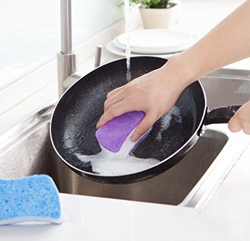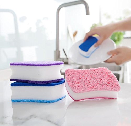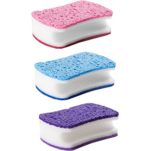 FashionBoutique Set of 3 Double Side Cleaning Sponges for Multi-use,Heavy Duty Scrub Sponges for All Surfaces (Pink/Blue/Purple)