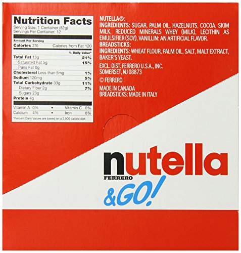 Ferrero Nutella and Go Hazelnut Spread and Breadsticks, 12 Count.
