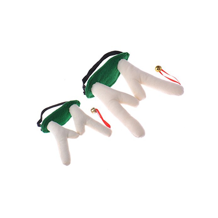 AWHAO 애완동물 개와 고양이 애견용 크리스마스 모자 순록 두 개지각 귀여운 축하 악세사리 카츄샤 그린 M