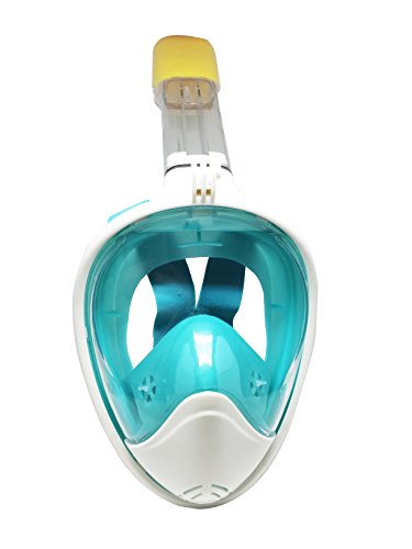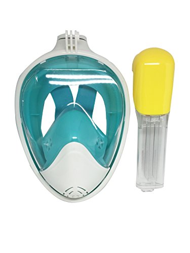 Snorkel Mask 180° view for Adults and Youth. Full Face Free Breathing Design.[Free Bonuses] Cell Phone Universal Waterproof Case (Dry Bag) and Anti-Fog wipes (White/Green, L/XL)
