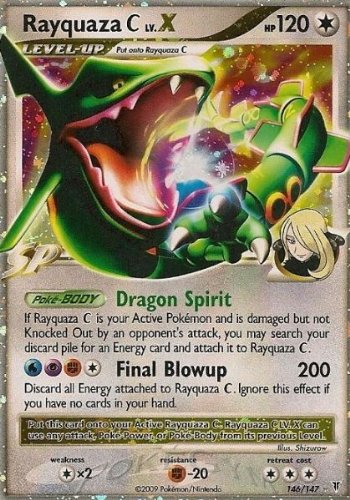 -. Brand : Pokémon -. IsAdultProduct : 0 -. Label : Pokemon Company International -. Manufacturer : Pokemon Company International -. Model : NA -. MPN : 1-134124146 -. PackageQuantity : 1 -. PartNumber : 1-134124146 -. ProductGroup : Toy -. ProductTypeName : COLLECTIBLE_CARD -. Publisher : Pokemon Company International -. Studio : Pokemon Company International -. Title : Pokemon Platinum Supreme Victors Single Card Rayquaza C Lv. X #146 Ultra Rare...