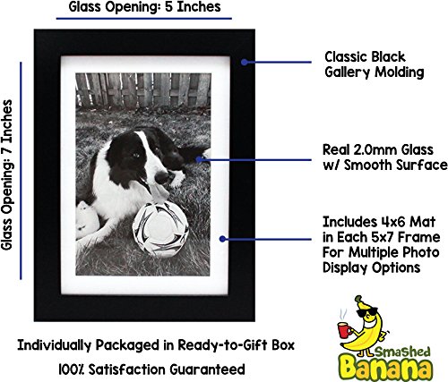 TOP QUALITY MATERIALS: With a smooth black finish and thick glass front, this frame is built to last so your photos can hang beautifully for years. This frame has features others don't including turn buttons on back to easily swap pictures, an easel for desktop display, attached hardware to easily hang, and white mats in each frame to display 4x6 photos.