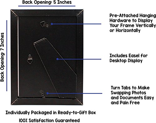CLASSIC GALLERY DESIGN: This 5x7 inch black picture frame double pack features an elegant European design that will help accent any home or office. Frames includes attached hanging hardware for easy display or an easel to feature your favorite photos on any desk or tabletop.