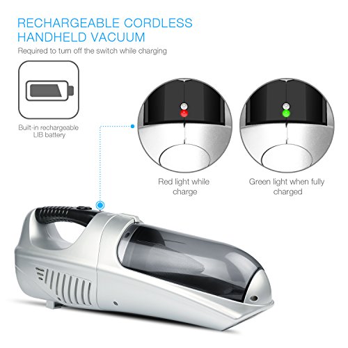 LITHIUM INTEGRAL BATTERIES:Lithium Ion for long battery life and outstanding performance.This technology makes the Funkoo handheld vacuum charge quickly and enables you to clean up home up to 20 minutes without re-charging.