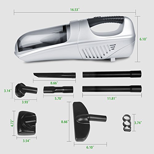 POWERFUL SUCTION: DC 12V 4000PA suction, it can pick up 2 iPhone 6 easily. Equipped with various attachments to make it clean well in corners, in your home or your car. It can easily clean dust, crumbs, pet hair, as well as liquids