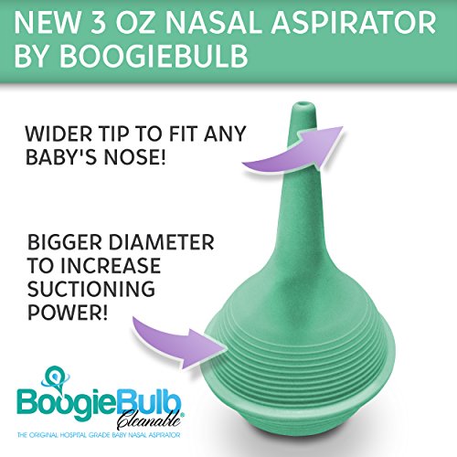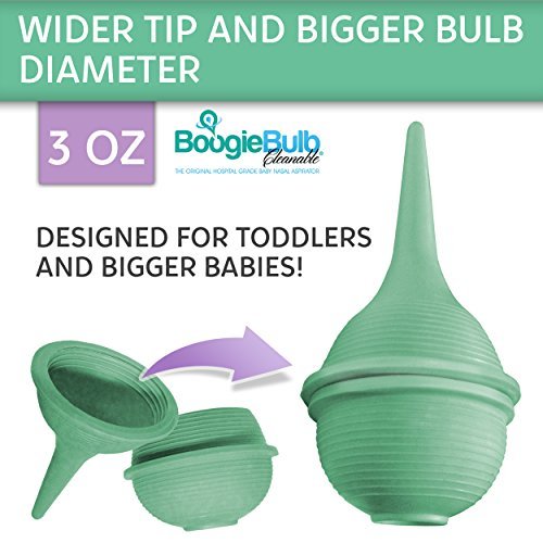 -. Feature : THE BIGGER 3 OZ Aspirator Has a Wider Tip and Bigger Diameter that increases suctioning power and is better suited for toddlers and bigger babies instead of newborns. HOSPITAL GRADE NOSE SUCTION. Every Time You Use or your money back! 100% Satisfaction Guarantee. We also guarantee this is the best baby nasal aspirator on the market! / EASY TO USE. Simply twist back on after cleaning to reuse. Soft Rubber and Narrow Tip syringe make it easier to suction the snot out of your baby girl or baby boy nose. / SAFE. BPA, Phthalate, Latex Free / EASY TO CLEAN and dry to completely eliminate mold build up. No other nasal aspirator/nose sucker on the market can guarantee you this. / 1 BOOGIEBULB SAVES $100's. The need for having to buy any replacement aspirators for future use. Stop wasting your money on inferior models and get yours today. Click on the Add to Cart button now! Perfect for the baby nursery, startup baby kit, a baby registry or even a baby gift