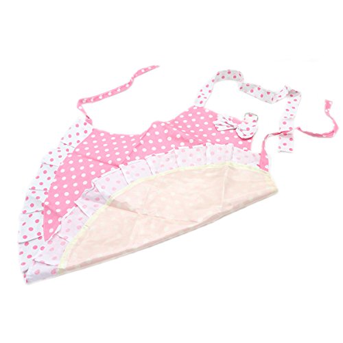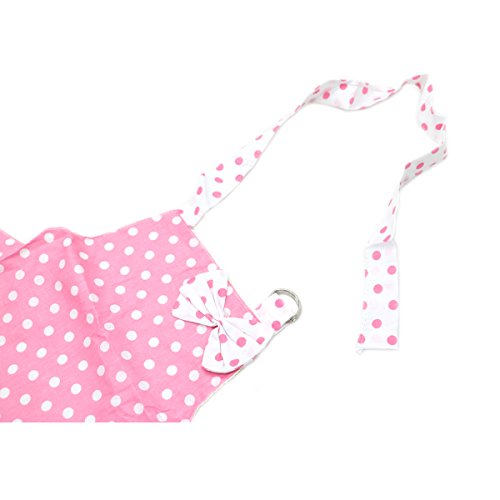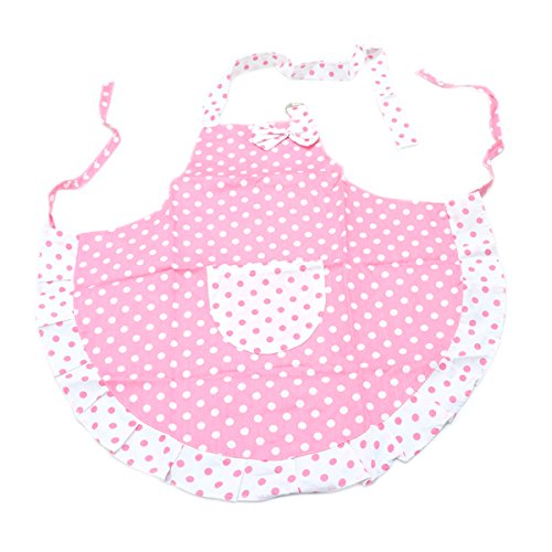 HUELE Princess Bow Frill Adjustable Kid Cotton Apron, White Pink Dot