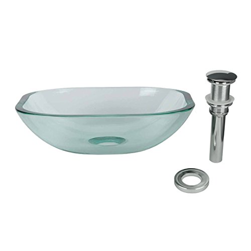 Tempered Glass Vessel Sink With Drain, Clear Square Mini Bowl Sink