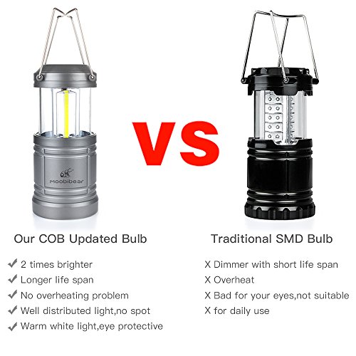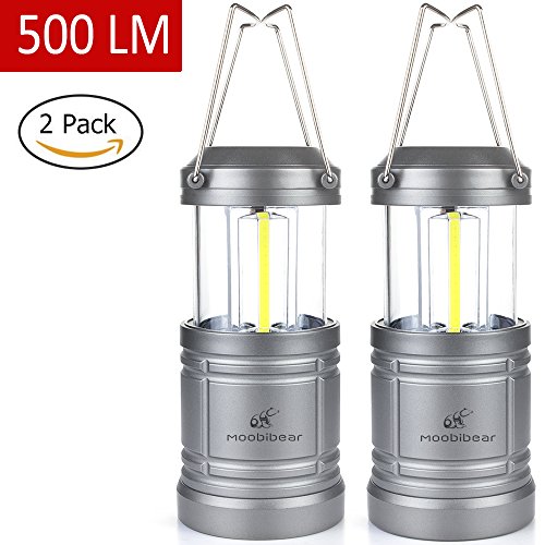 Moobibear 500lm LED Camping Lanterns with Magnetic Base, 30 LEDs COB Technology Battery Powered Water Resistant Collapsible Lantern for Night Fishing, Hiking, Emergencies, 2 Pack