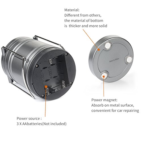 PORTABLE& COLLAPSIBLE - This portable light uses 3 AA batteries(not included) as power supply, which enables you to carry the light to anywhere that you need a bright handy light. The advanced collapsible design also makes using and transporting the lantern super convenient.