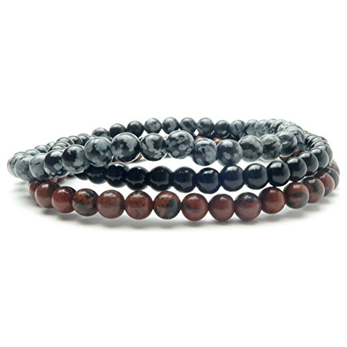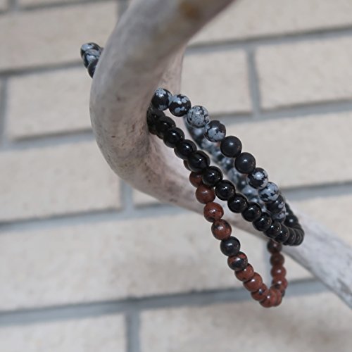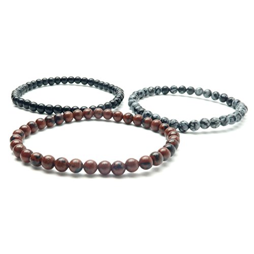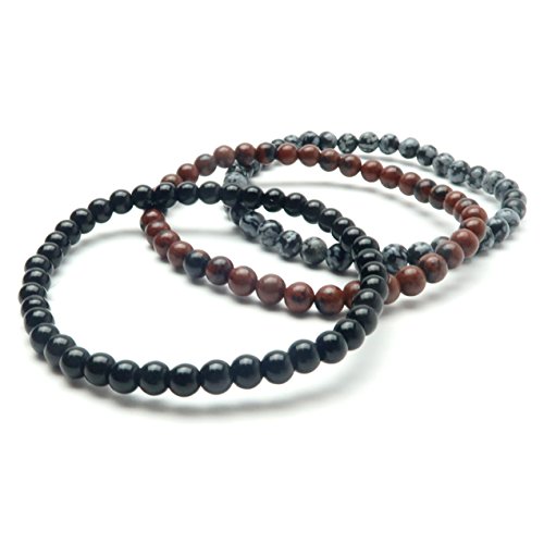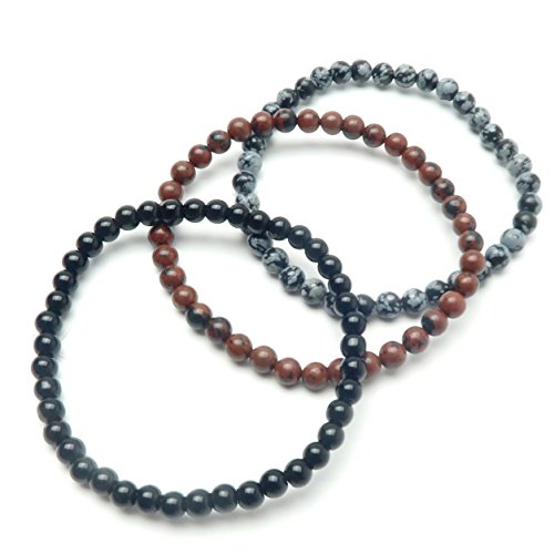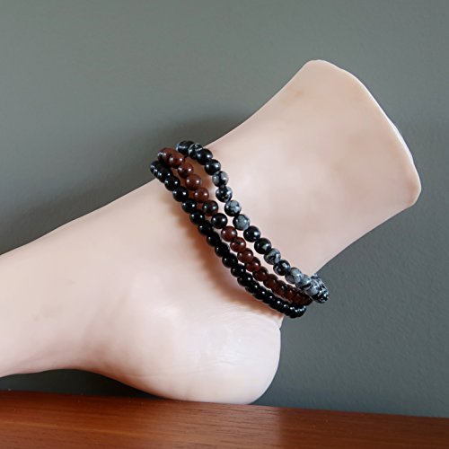 Handmade in California: Natural Black, Mahogany and Snowflake Obsidian are strung on your new crystal healing anklets. These are solid Black Obsidian, black and red Mahogany Obsidian and black and gray Snowflake Obsidian stones polished into round and roundish beads. The genuine Obsidian beads are strung on sturdy stretch cord to create your three unique anklets.