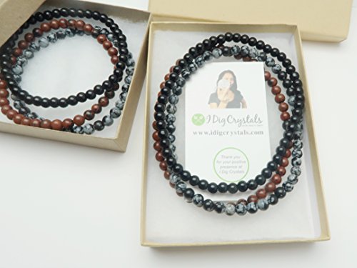 Includes: 1 Black Obsidian, 1 Mahogany Obsidian, 1 Snowflake Obsidian anklets in an "I Dig Crystals" gift box.