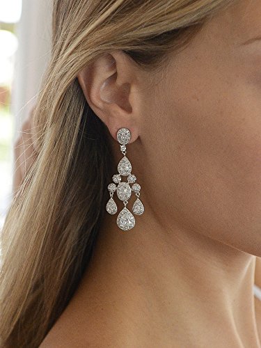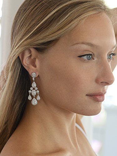 Mariell's regal wholesale wedding or pageant chandelier earrings feature a spectacular array of oval and teardrop CZ stones encrusted in pave CZ jewels. All eyes will be on you as you make your grand entrance in these sparkling statement earrings. Make these stunners a part of your special occasion jewelry collection - you'll be glad you did! We promise you will fall in love with these beautiful baubles or your money-back, guaranteed. Genuine Silver Platinum Plated, AAAAA Grade Cubic Zirconia, Lifetime Guarantee.Feature