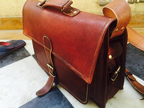 -. Feature : Imported 16"leather messenger satchel laptop briefcase bag made by handolederco / size is 16" and 12" height and its made from genuine leather and looks is vintage / its have 3 compartment as well as 2 zipper pocket and have 55" long shoulder strap and bag have 2 small side pocket as well as huge front pocket / BE COOL STYLISH FASHIONABLE WITH VINTAGE LOOK LEATHER BRIEFCASE MESSENGER LAPTOP BAG / ITS USE AS A LATHER MESSENGER BAG , SATCHEL BAG , LEATHER LAPTOP BAG , LEATHER BRIEFCASE AND MESSENGER BAG