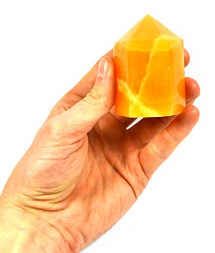 Brilliant Orange Crystal Stone Point, 3" Tall (0.45lbs), Carved from Real North American Calcite - The Artisan Mined Series by hBAR