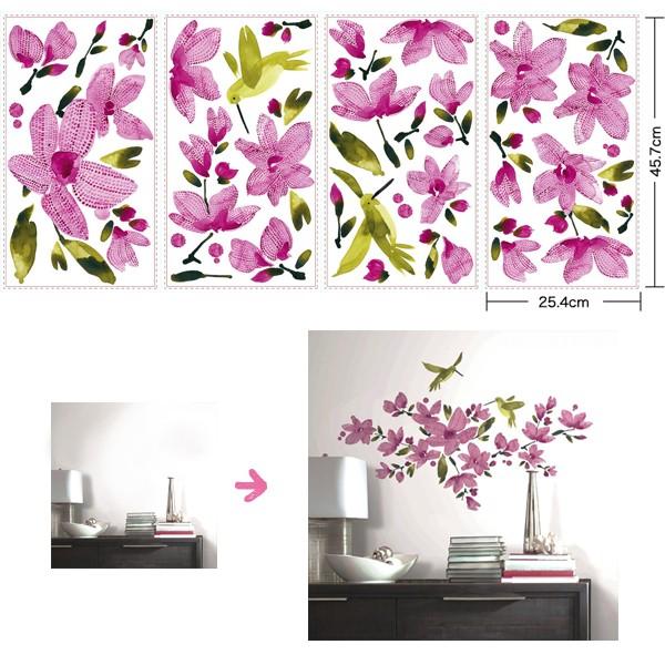『蔓性植物の女王』と言われている、クレマチスの花とハチドリがモチーフのステッカーです。 鮮やかなピンクの大きなお花は白やベージュの壁紙に映えそうですね。 ★商品名★ピンクフロウィング ヴァイン★商品番号★RMK2496SCS★シートサイズ★[45.7cm × 25.4cm]×4枚★内容★35ピース/1パック
