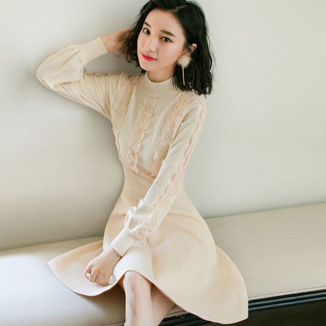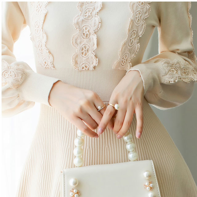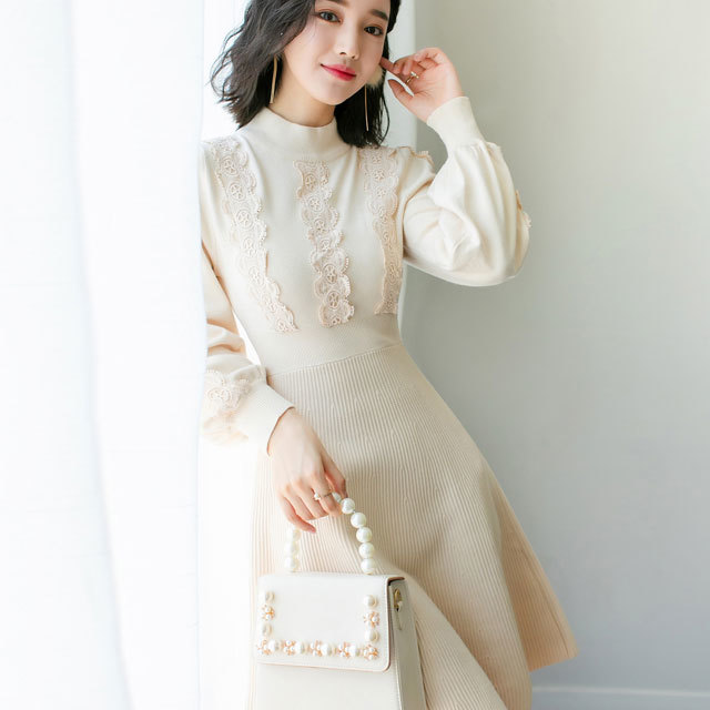 ワンピース ニット レース ドレス パーティー レディース 女子会