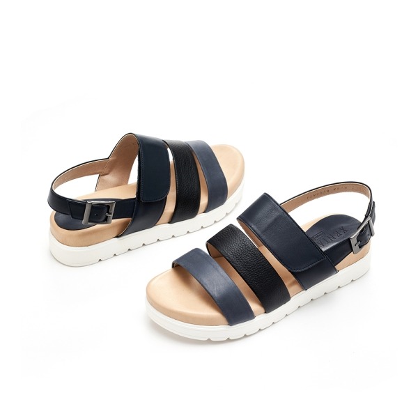 ◆ POINT : 베이직하고 모던한 3 스트랩 샌들 발등에 밸크로와 고무밴드가 있어 등높이에 따라 조절하여 착화가능 진이나 와이드팬츠에 코디할수 있는 제품 전체 고탄성 스폰지가 삽입되어 장시간착화에도 피로감이 덜감