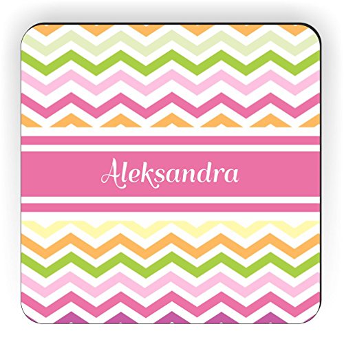 Rikki Knight "Aleksandra" Pink Chevron Name Design Square Fridge Magnet