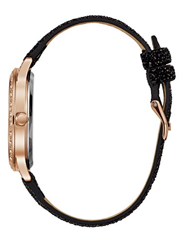 Analog timepiece gives a sparkling finish with a glittery strap and polished rose gold-tone case.