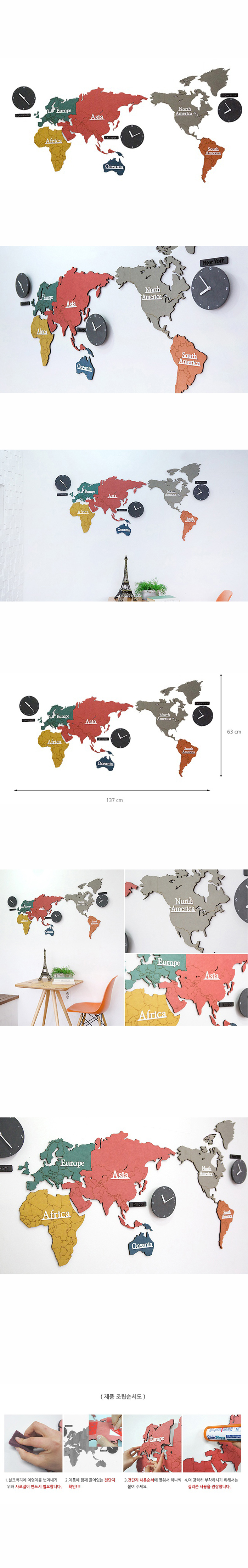 Wall Clock Eco Colorbord World time Mix Noiseless Movement