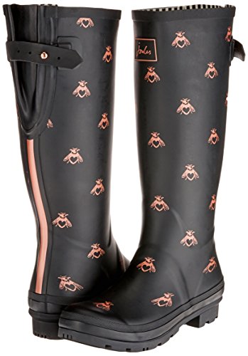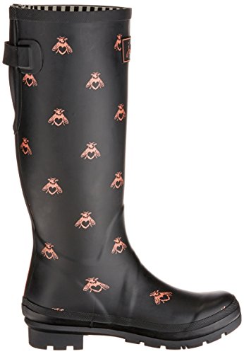 Joules Women's Printed Welly Rain Boots Black (Black Love Bees) 5