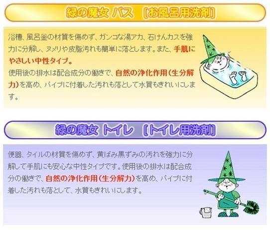 | 成分 | 【キッチン】 界面活性剤(20%ポリオキエチレンラウリル硫酸ナトリウム、ヤシ油脂肪酸アミドプロピルベタイン)、生分解促進剤、安定剤 【バス】 界面活性剤(7%ポリオキシアルキレンアルキルエーテル)、金属封鎖剤、溶剤、生分解促進剤、酵素 【トイレ】 界面活性剤(4%高級アルコール系(非イオン))金属封鎖剤、溶剤、生分解促進剤 |