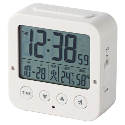 -. Title : ELECOM 電波デジタル目覚し時計 照度センサー機能 温湿度計 ホワイト CLK-DD001WH