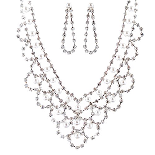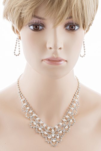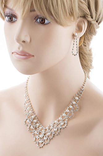 Beautiful rhinestone with pearls jewelry set. This lovely necklace is completed with matching earrings. The necklace has a lobster claw closure. Earrings have post back closures for pierced ears.Feature