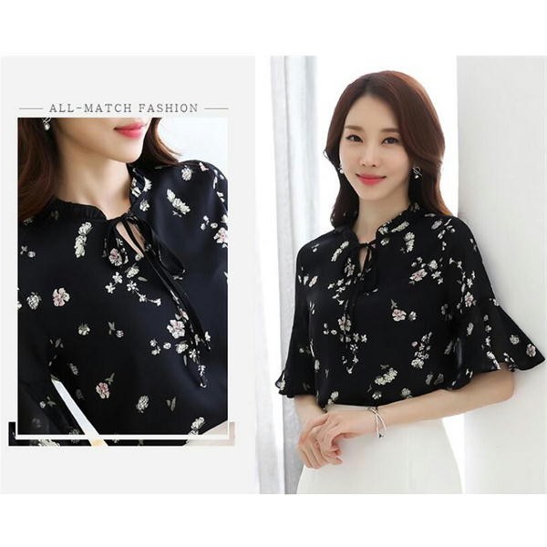 ★袖のフリルがカワイイ花柄ブラウス★これからの季節にピッタリの花柄ブラウス!袖が五分丈・フリルがカワイイ1枚です。首元のリボンさらにオシャレ!大人カワイイコーデが完成します!▼サイズ▼Mサイズ 着丈:約59cm バスト:約90cm 肩幅:約35cm 袖丈:約33cmLサイズ 着丈:約60cm バスト:約94cm 肩幅:約36cm 袖丈:約34cm▼素材▼ ポリエステル100%※注意事項※商品画像はできる限り実物の色に近づけておりますが、モニター・パソコン等の画像解像度により実際の商品と多少色味が異なる場合がございます。色味が異なるなどのクレームはお受けできませんのでご了承ください。海外・機械による生産のため、生地の継ぎ目に若干のズレや多少のほつれによる、形やサイズに多少の誤差が生じる場合がございます。また、混紡繊維によって生地の織りの他繊維が混紡している場合がこざいますが品質上の問題はございません。予めご了承くださいますようお願いいたします。