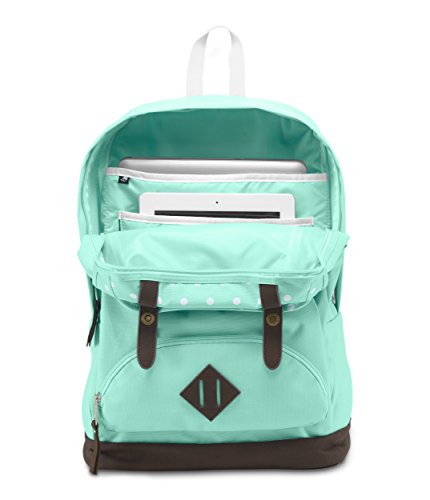 Studio : JanSport Publisher : JanSport Product Description JanSport Cortlandt backpack. Premium faux leather bottom and trim details. Zip pocket on front with snap button buckle front flap pocket with organizer. Main compartment features internal padded laptop sleeve. Mesh lined padded shoulder straps. 25L. Dimensions: 17.5" x 13" x 6"(45cm x 32 cm x 15cm). 600D polyester. Imported. 0