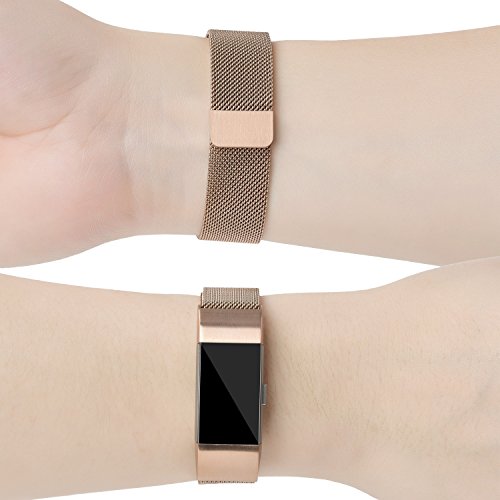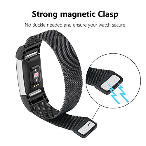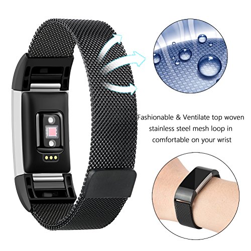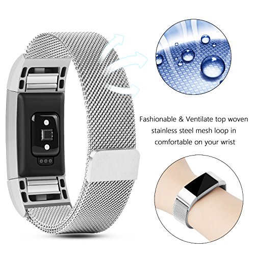 Fitbit Charge 2 Replacement Band, MeanLove Stainless Steel Bracelet Wristband Magnetic Absorbin...
