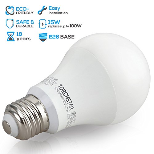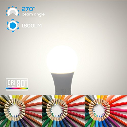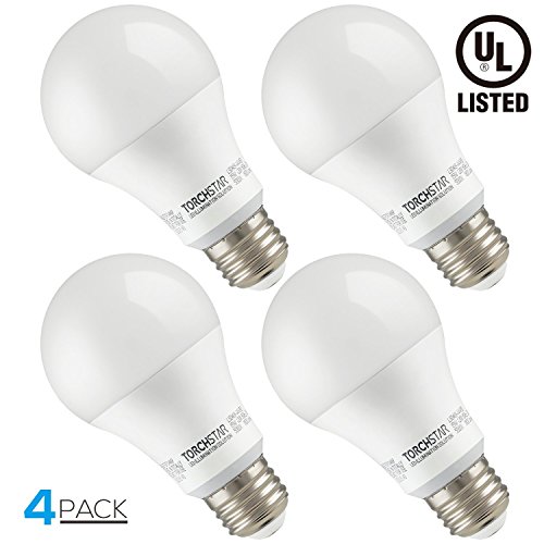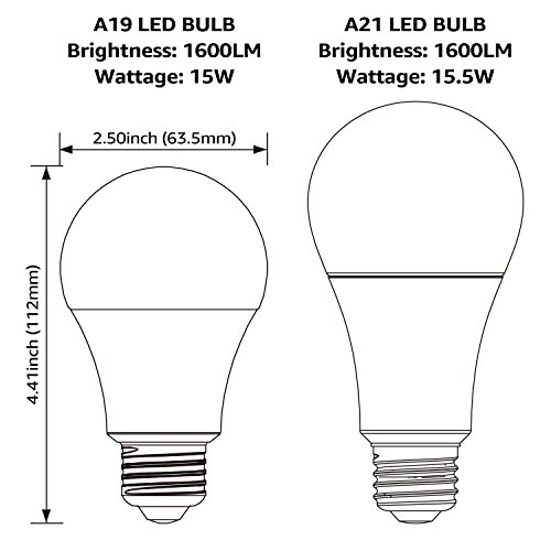 Garage Door Opener LED Bulb, 100W Equivalent LED A19 Light Bulb, 1600 Lumens Ultra-Bright 5000K Daylight, Non-Dimmable, Standard E26 Medium Base, UL-listed, Damp Location rated, Pack of 4