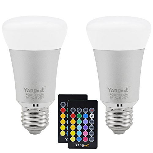Yangcsl 5W A19 Remote Controlled Color Changing LED Light Bulbs, RGB + Daylihgt White, 40W Incandescent Bulb Equivalent, 16 Color Choice, E26 Medium Screw Base (Pack of 2)