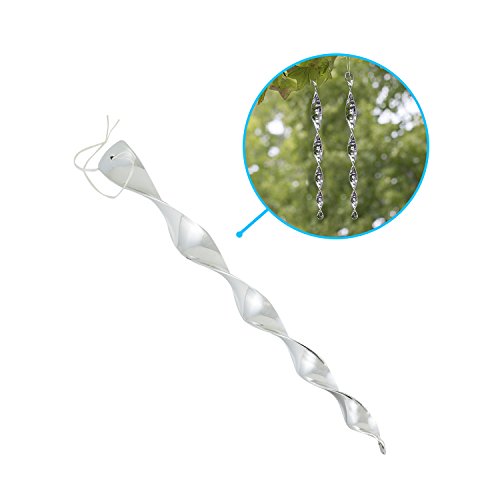 - TWISTS AND TURNS BY ITSELF: The high elasticity of the hanging band allows you to hang rods anywhere you need them — without any breaking or snapback. Suspend the rods from tree branches, railings, and roofs. When suspended in an area with adequate sunlight, the rods naturally twist 360-degrees via wind flow, with the sunrays bouncing off the exterior, creating reflection that works as a natural scare device for incoming birds.