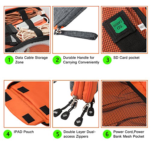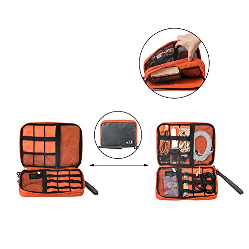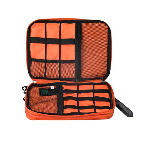 ★ VERSATILE -- The Versatile Electronic Accessories Case is roomy with multi pockets. It is specially designed for well organized people. Multiple pockets of various size provides great flexibility for organizing your accessories. Easy to carry with handle or fit in backpack, it’s a great partner for your hard drive, cables or other things at travel, in the office or at home.