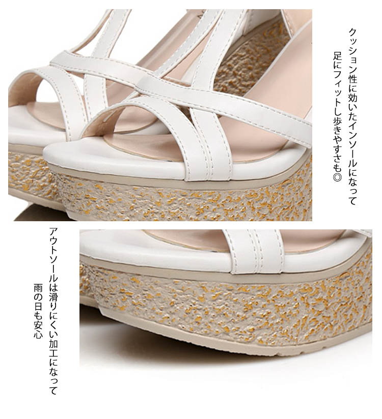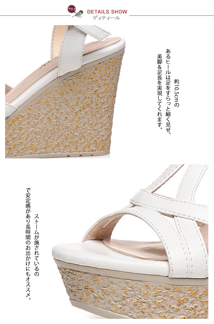 | 足をキレイに見せるストラップデザインで、ぐっとスタイリッシュに決まるサンダル。ストラップが足をきちんとホールドしてくれるので、安定感のある歩行ができます。美脚ウェッジソールに厚底ストーム付きで、ヒール高低差が足に優しい楽ちんな履き心地なっています。かわいいだけじゃなく、履くだけで美脚になれる優れもの♪ガーリーなコーデはもちろん、マニッシュなコーデにもピッタリ♪ | |