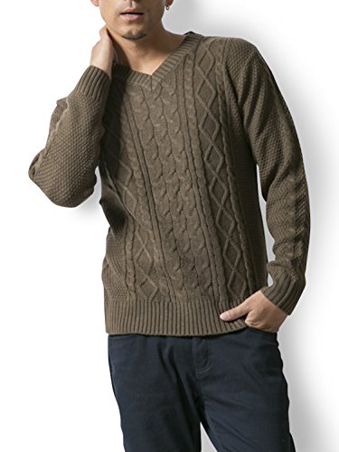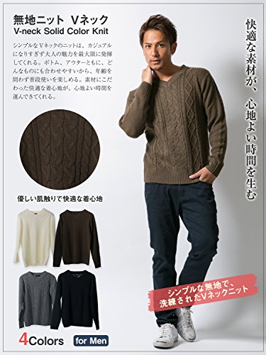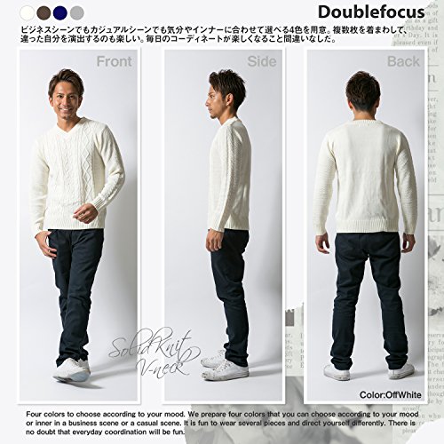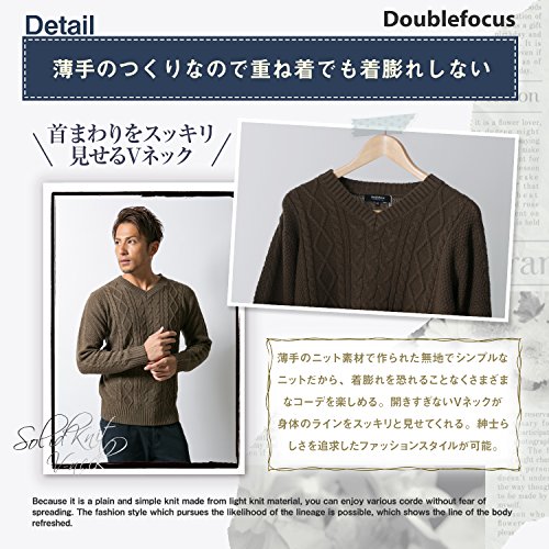 -. Title : Doublefocus メンズ ケーブル ニット セーター Vネック シンプル あたたか 大人 アクリル 着まわし ウォッシャブル